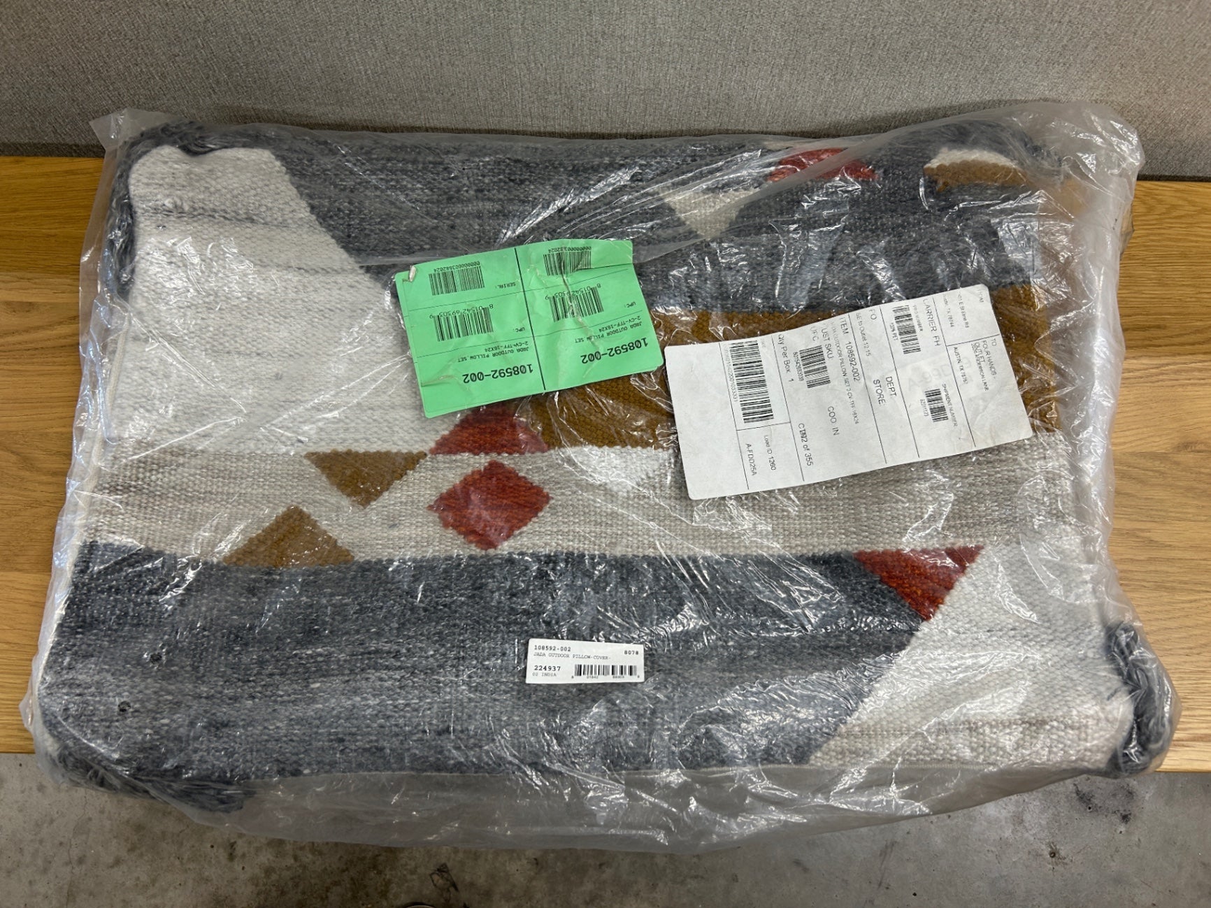 Toss in some texture, indoors or out. Made entirely from recycled plastics, a set of outdoor-friendly throw pillows features boho color blocking and tassels for flair. Store inside during inclement weather.