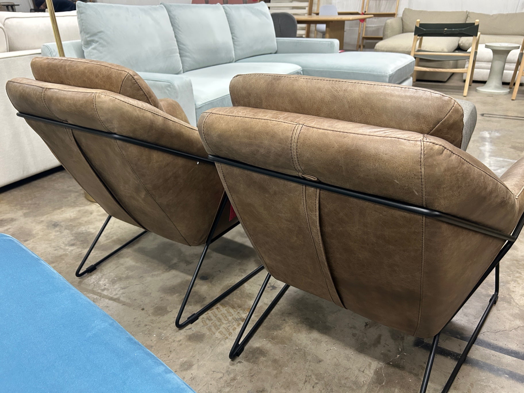 The Greer Club Chair is a beautiful modern design that will attract the eye with its sleek look. The cushions are made from beautiful top grain leather. Rounding out this design is a beautiful black iron frame that surrounds the chair. Top grain leather Sturdy iron frame so you know it's built to last Contemporary Modern Style.