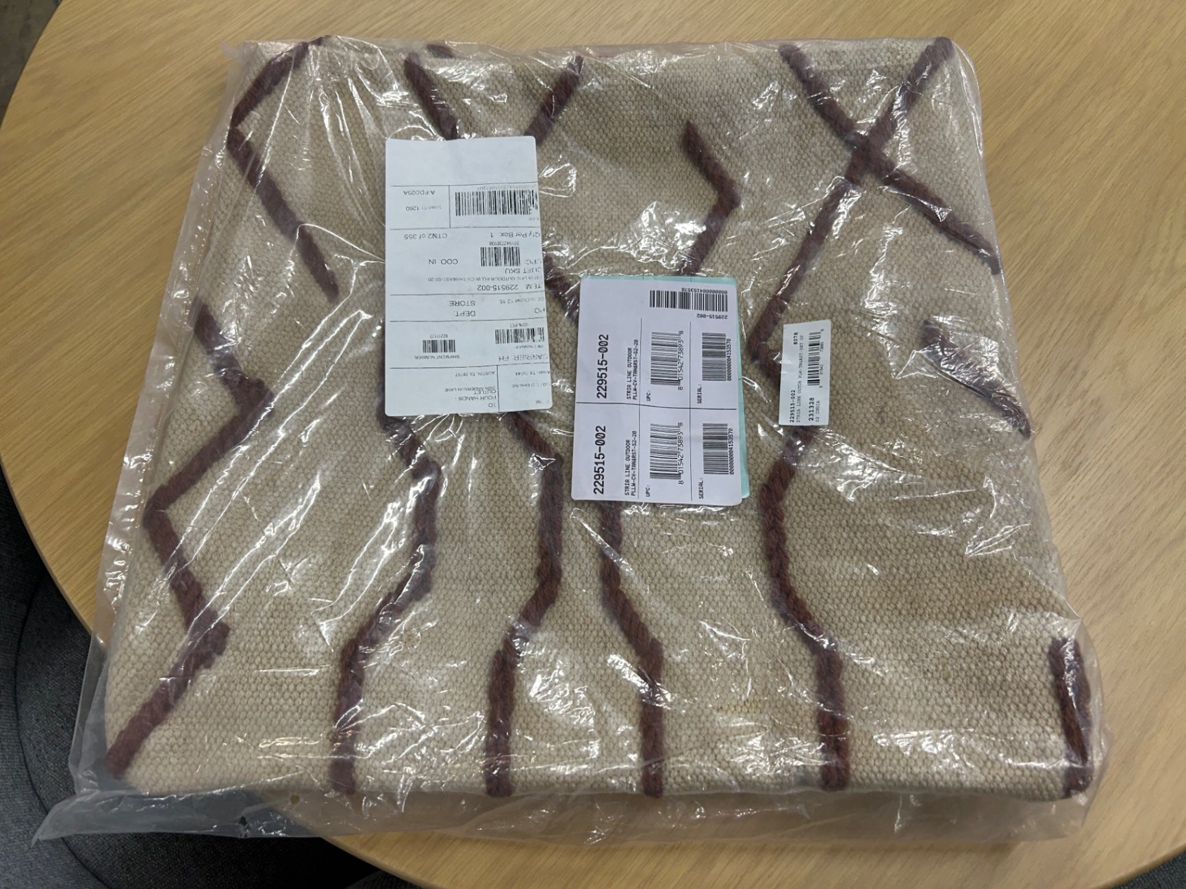 Toss in some texture, indoors or out. A primitive Moroccan-style pattern tops this set of eco-friendly outdoor throw pillows made entirely from recycled plastics. Store inside during inclement weather.
