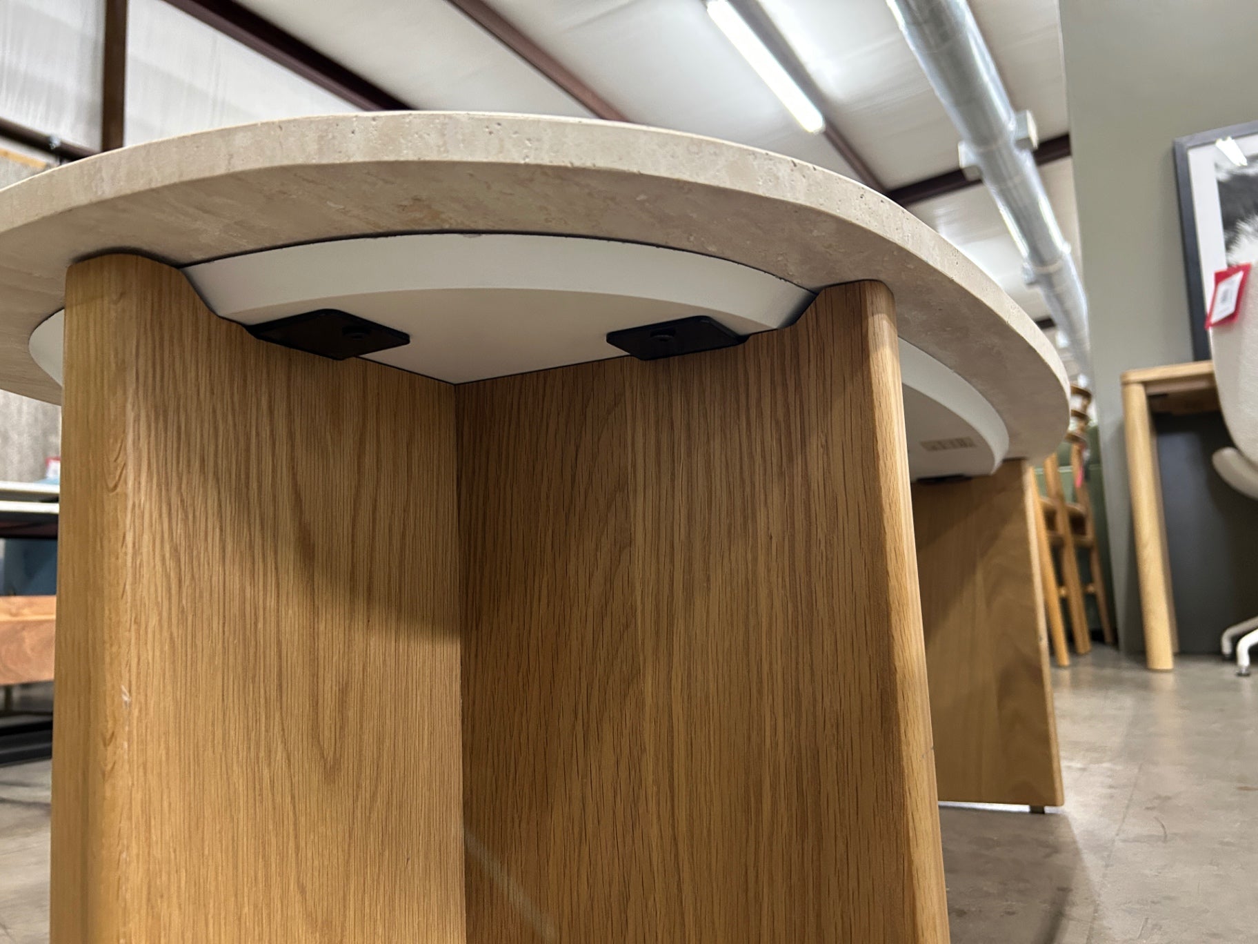 The Sporo coffee table is not just a piece of furniture: it's a statement. Set atop a sturdy oak frame, the Sporo's solid travertine top sports a unique mottled appearance and is praised for its high durability. Embrace the warmth and distinction of the Sporo.