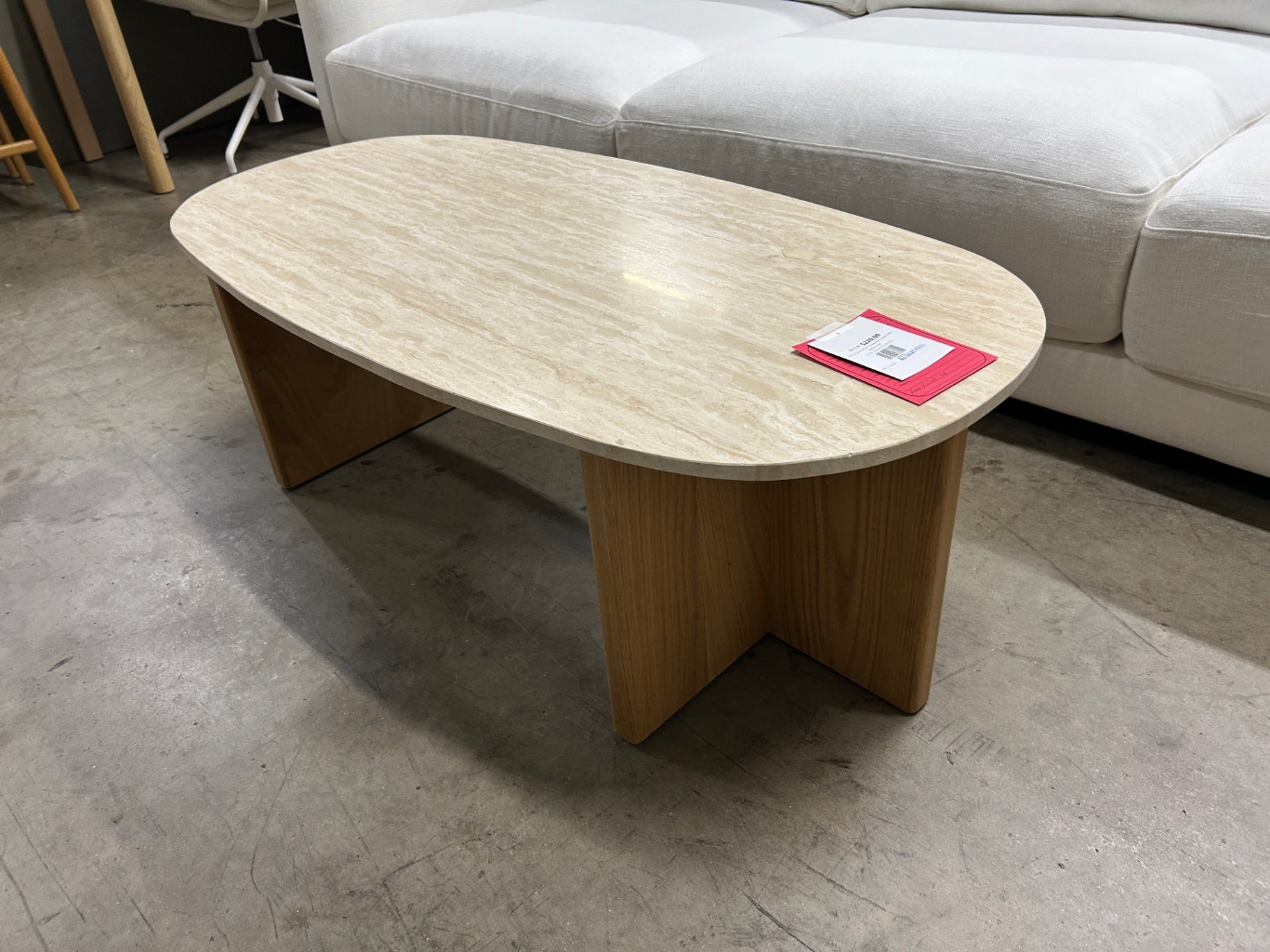 Sporo 47.25" Travertine Coffee Table - Natural Oak