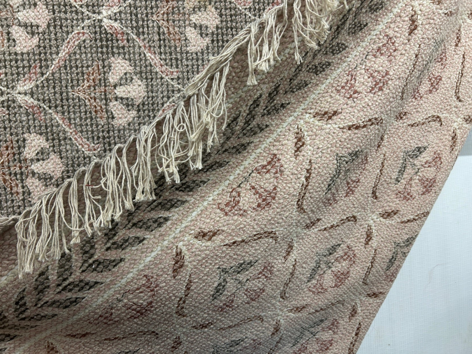 Transform the atmosphere of your home with a simple flip. Cecile features a reversible design with a rich, textured floral motif on each side: one side in Olive Green and the other in Earthy Beige — what'll it be today?
