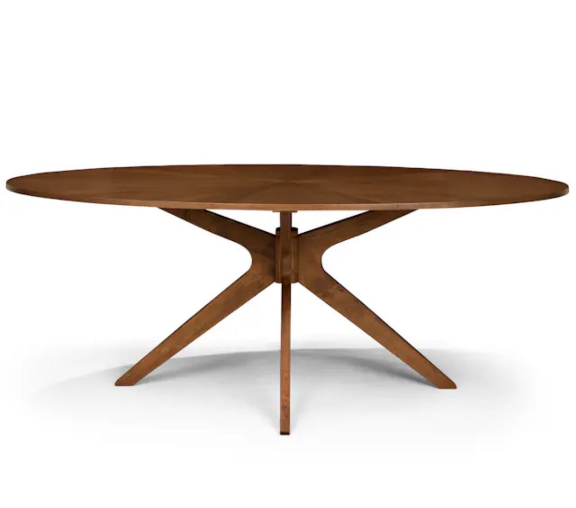 If Camelot was a design destination, the knights would have sat at an oval dining table. Share a meal with 4-6 of your favorite people (more if you don’t mind bumping elbows). This mid-century style walnut dining table is set atop solid wood legs and features a veneered starburst-style design on the top. Glamour and sculptural interest, all in one table.