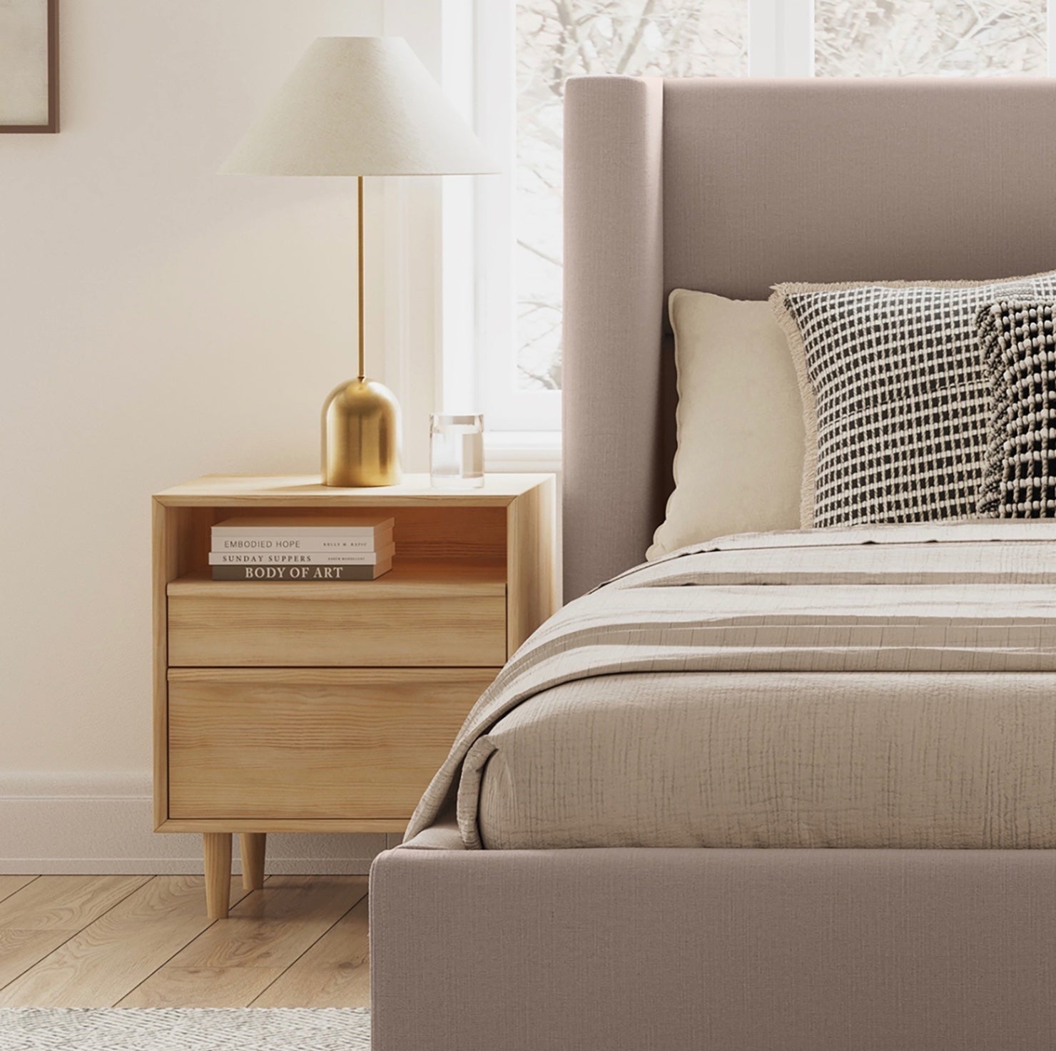 If beauty comes from within well then, dang, your bedside essentials really must be beautiful because the Lenia is stunninggg. Minimal and spacious with a natural wood grain, the Lenia seamlessly blends into any design style while also making its own statement. Your collection of balms and books will thank you.