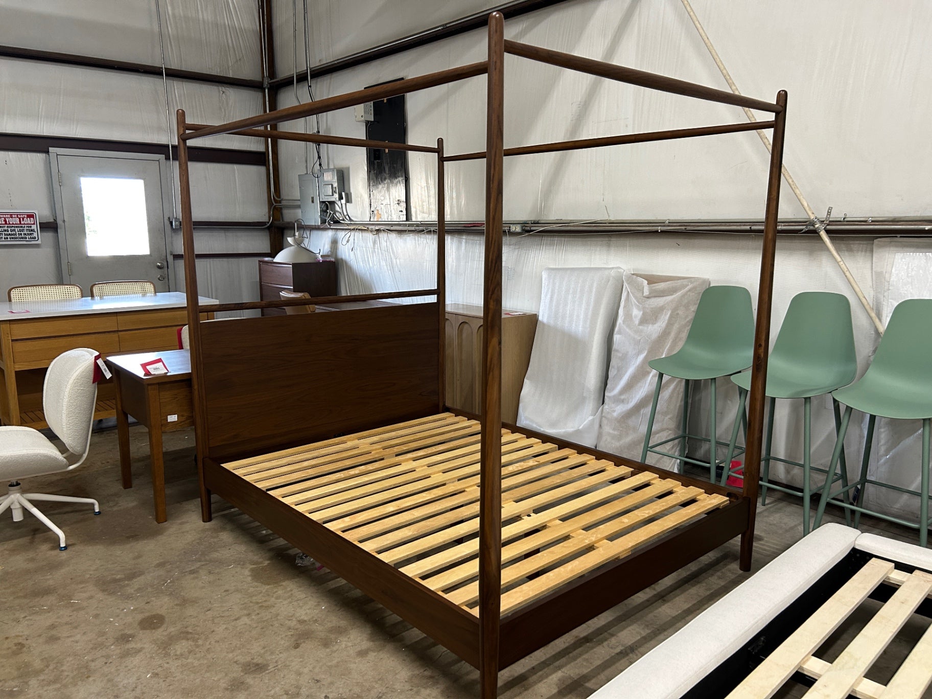 No piece of furniture can upstage the Lenia canopy bed. That’s right, a canopy bed — they’re not just for fairy tale characters. Our version is inspired by the same mid-century modern design details as the rest of our Lenia collection — solid wood spindle legs and posts — and while we don’t recommend mattress stacking like a modern-day Princess and the Pea, we do encourage certain “royal” behavior: breakfast in bed, texting in bed. watching movies in bed... and making forts.