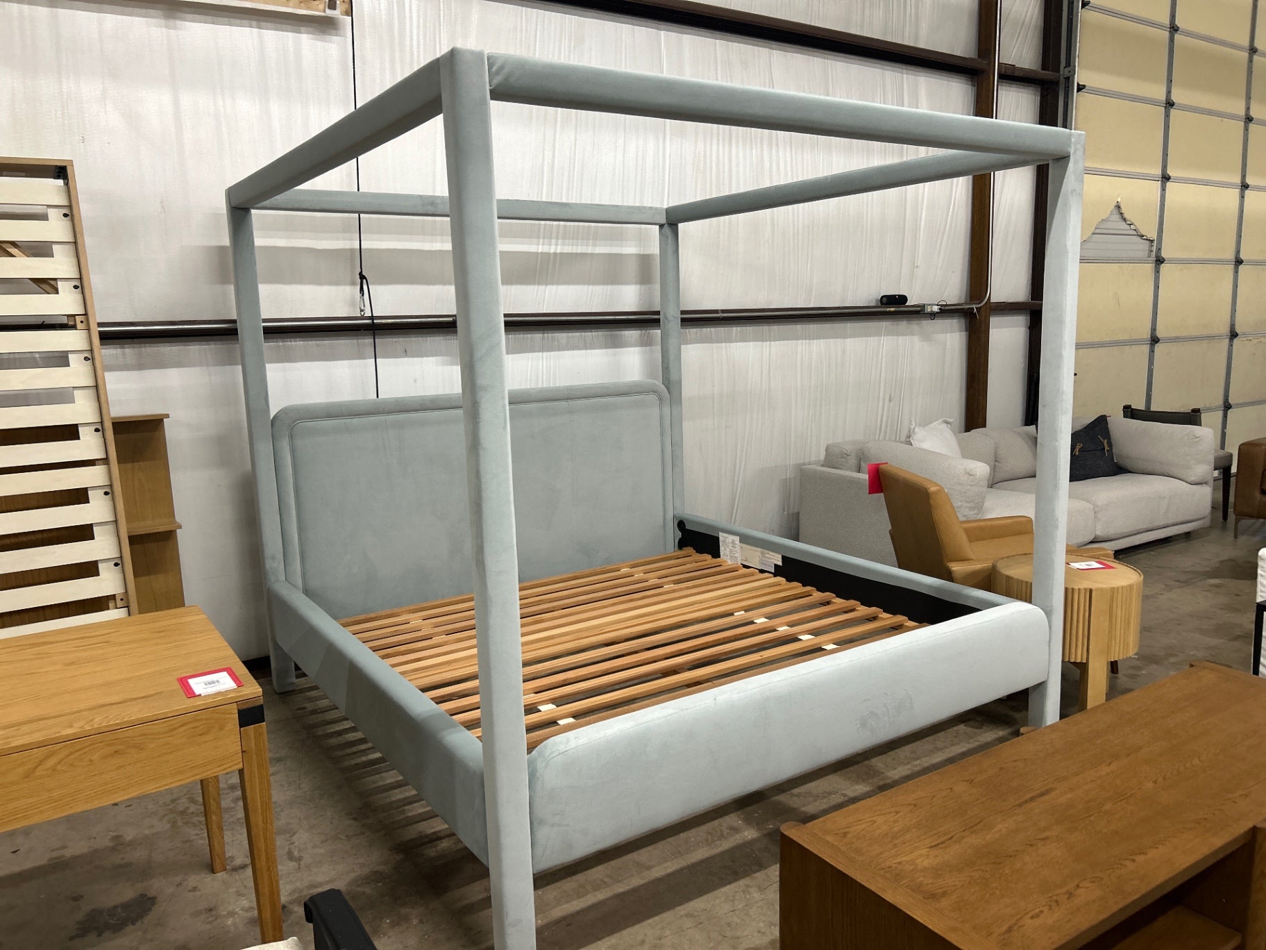 With clean lines, seamless details, and a dramatic silhouette, the fully-upholstered Rowan Bed is our unique, modern take on the classic canopy bed. Rowan can easily be the center of attention, but still feels at home in any space. Not compatible with adjustable frames.